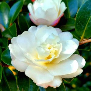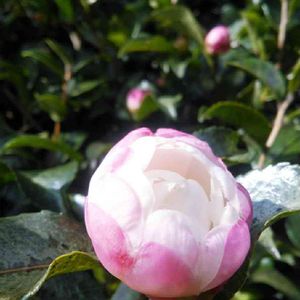 山茶花 蕾はうっすらとピンクだけど開くと綺麗な白い花🌿🤍🌿