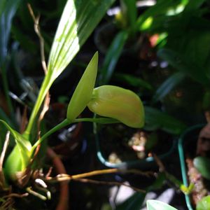 いつの間にか花芽が出てるなぁ。 て言うか、蕾大きいなぁ。スターフルーツみたいだ。もう咲きそうじゃん。 にしても、うちに来て1年未満で2回も花期を迎えるとは、なるほど、新芽が出る度に咲く不定期咲きというのはホントらしい。 で、リップは何色になるのかな? セロジネ スペシオサ 'Green & Black' Coelogyne speciosa (Blume) Lindl. (1833) 'Green & Black' ところで、昨年発表された論文でセロジネ属が再編されたみたいだね。 分子系統に合わせて14属くらいがセロジネ属に統合されたみたいだけど、大きな変化としてはデンドロキラム(Dendrochilum)がセロジネになったこと、セロジネから独立してたパニセア(Panicea)が再統合されたことあたりかな。 これによってパニセア ユニフロラ(Panicea uniflora)もセロジネ ユニフロラに戻るわけだけど、以前からセロジネ フィンブリアタをセロジネ ユニフロラとして売って無知を曝け出してたおバカさん業者たちはどうすんだろうね。 追記:フォリドータ(Pholidota)もセロジネに統合される属の一つだった。