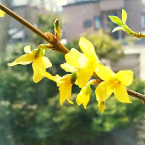 庭のレンギョウの枝を花瓶にさしていたら開花しました。 ー足先に春を楽しんでいます。