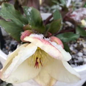クリスマスローズ 氷の薔薇 ホワイト の タグが付いてました 綺麗な花色です