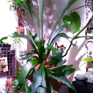 のびぃ〜るっ👆のびぃ〜るっ👆👆 我が家の朽ち木の朽ち子さん(中)の名無しビカクシダ🦇🌿 出てくる胞子葉がどんどん伸びているっ😱 ビカクさんって、こんなに伸びるんだねっ😆 もう…連れ風呂できないっ😢 年頃の娘を持つパパの気分っ👨💦 大好きよぉ〜っ😍