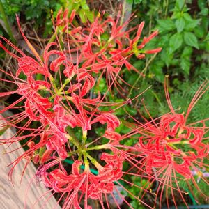 おはようございます。 手作りベンチの横花壇に咲く彼岸花。 植えてないのに、 3年前に、花壇に 突如現れた彼岸花。 赤い花が、増え、咲きだしました。 花茎のみ、葉はないです。 台風が去り、秋らしくなりました。 昨日は、クーラーなしで、過ごせました。 花が終わったら、すらりとした葉が、伸びてきます。