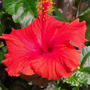 こんにちは👋😃 ハイビスカス、レッド。 久しぶりに真っ赤な花が咲きました。 今日は、雨が、降っています。 まるで梅雨みたいです。