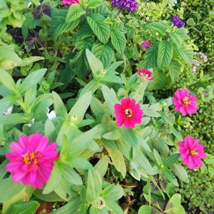 咲き程のpicの反対側から撮りました🤗📸 ジニアとニチニチソウ ゆずあいす🍨は1つの鉢です🥰