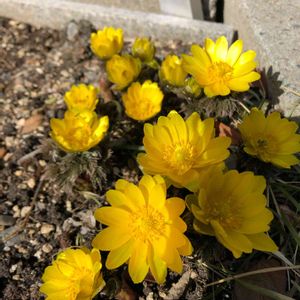 春の喜び 福寿草あちこちに、 輝きの花が咲き元気を与えてくれます。