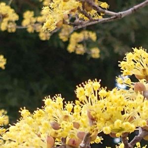 里山に春が来ました サンシュユ(山茱萸)の花が、 パア〜っと辺りを 明るく彩ります