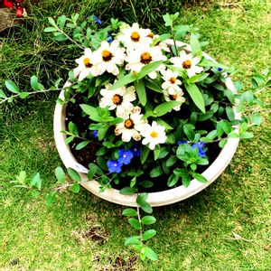 ☀️🥵💦暑い時は、お花の色➖🟦ブルーと🤍ホワイトの寄せ植えもGOOD💕🌼💕🌼💕 植えてから少しずつ🤏青い小花が咲き始めました❣️✌️