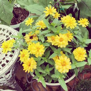こちらは🟡黄色のジニア…少し花が大きめ💕🌼💕🌼💕 多種の寄せ植えはとても華やかだが、単一の方が失敗は少ない👍 リビングの窓から見えるこの黄色のジニアには、毎日パワー💪をもらっている❣️😊