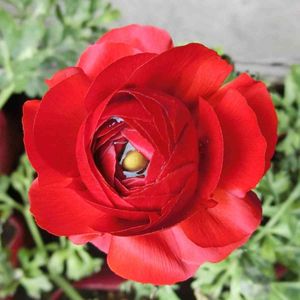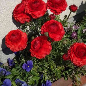 薔薇のように華やかなこの赤い花はラナンキュラス小春びよりです。 従来のラナンキュラスとは異なりこの品種は耐寒性が強く、戸外でも栽培可能な丈夫な品種です。 中近東・ヨーロッパ南東部原産。 ハナキンポウゲ科ハナキンポウゲ属の多年草。