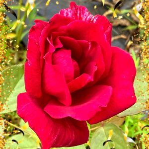 四季咲き大輪バラ だんじり囃子(ばやし)🌹 我が家の花畑で、ひときわ目立って咲いています🥀 もう少し模様が入っているとお囃子らしくなるのに、、