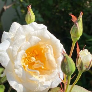 中心と外側が白く、ころんとした花びらのミニバラ カップ咲きの、ニコールコルダーナが咲きました❣️ 返り咲きで、二ヶ月目には、蕾をつけ咲くお利口さん🌹