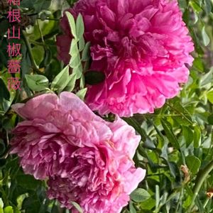 裏のお宅の、八重咲きの箱根山椒薔薇🌹です🥀 葉が山椒の葉に似ていて、四季咲きですが 春から秋まで、ずっと咲いてます❣️ 十六夜薔薇と、元は同じ系統のバラです‼️ 御殿場市や小山町では、よく庭で見かけるバラです‼️