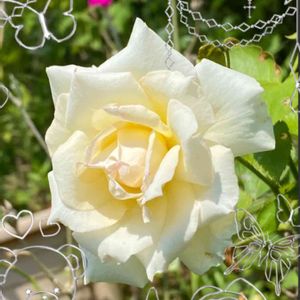 やっぱりバラが好き🌹 我が家の秘密の花園に、ひっそりと咲いているバラ🥀 百合たちに負けじと、精一杯花びらを広げてます❣️ 優しいクリーム色のバラにホッとしますね‼️
