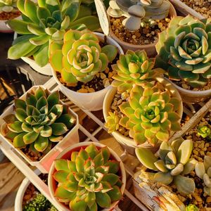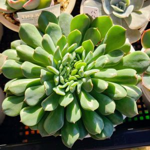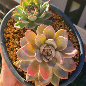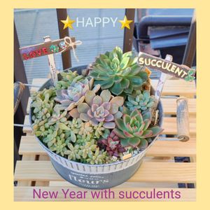 明けましておめでとうございます🌄 今年もGSの皆さんと、💗Succulents life💗を楽しみたいと思います🌼🌿 皆で可愛い子ちゃん自慢をしたり、コミュニケーションが出来ると嬉しいです😌🌸💕 よろしくね~💓♥️❤️ 今年の初のpic📸は‥ 場所問題で夏にチビ苗達をまとめて入れたら‥あら寄せ植えの完成⁉️の巻き~😆💕 確かねぇ‥手前が姫秀麗・隣がロビン×ワイルドコロラータ・ ブラッククイーン・ラウ065・ 一番大きく成長したアモエナビルバ‥ 真ん中にピンクプリティー×2株よん☺️👏