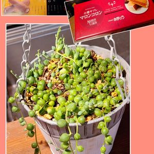 🏷️ネックレスの日 間に合いました~😆💦 8時半頃自宅へ到着✈️ 1週間ぶりの我が家です😊 外の多肉達は暗くて見えませんでしたが、お家へ入れていたグリネさんをpic⭐ ワタシ‥ネックレス育てるのあんまり上手では無いのですけど見て下さいね~💫😊💫 お菓子はマロンコロンとどさんこロールです⤴️