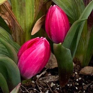 原種のチューリップ🌷 卵のような蕾に(〃♥^♥〃キャャャア) はなくきがもうすこりのびてくれるとうれしいなぁ〜 💕