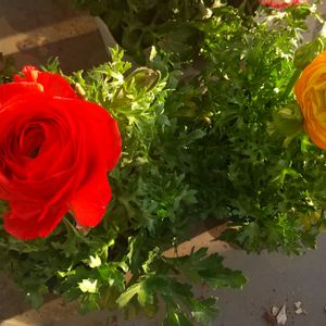 ラナンキュラス 赤系三人組 寄せ植え 明日には葉もシャキッとしてくれることを願って