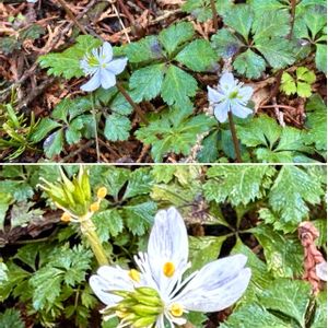 バイカオウレン(五加葉黄連) キンポウゲ科・オウレン属 日本固有種 自生地訪問。二週間前は雪でほとんど覆われていましたが完全に雪解けしていました。