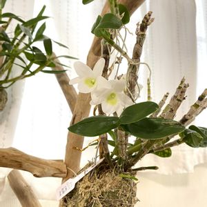 おはようございます。 デンドロビウム・エンジェルベイビーグリーン愛 近所のホームセンターでハダニまみれの見切り品を格安で購入したものです。 購入から1年が経過しましたが見違えるほどキレイに育ち、花をいっぱい付けてくれました。 セッコクと比べるとかなりボリューム満点です。