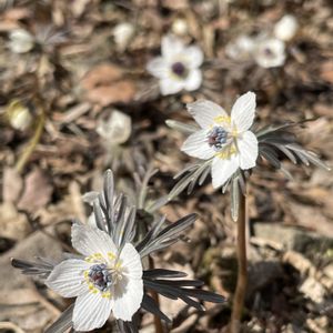 雪の様な妖精さん🧚は、星の数ほどいましたが✨🧚✨ 手前にいる妖精さん🧚しか撮れないのは残念極まりないですね😰😂 まるでバレーリーナーの様な白いチュチュを纏って、 蕊と葉っぱの美しい舞を見ている様です ✨🧚🌿✨🎶 セツブンソウ キンポウゲ科 セツブンソウ 属 スプリングエフェメラル