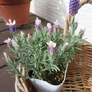 昨日園芸店でお迎えしたフレンチラベンダーさん。 お花の先のひらひらがまた可愛い❤️ ティアラサファイアと言うらしく、名前も素敵でした✨
