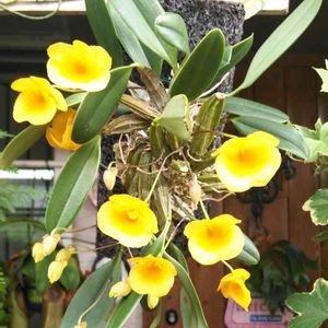 Dendrobium primulinumで、今はpolyanthumに統合された花です。花はNS6cmを超えていて、比較的大きな花が咲いたと思います。香りもスパイシーで、2015年の世界らん展の資生堂の限定香水にもなっております。 来年は50輪くらいを目指して頑張ります。