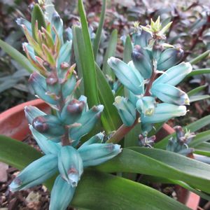 《ラケナリア•ヴィリディフローラ》ユリ科ラケナリア属 南アフリカの西部原産 冬型の植物で11〜1月に開花。美しい翡翠色の筒状の花を咲かせる。ヴィディフローラ=緑色の花という意味です。青い花好きさんへ。