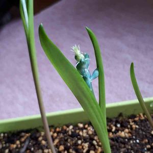 瑠璃色の可愛い花 小さい球根のお花です 数年前 ラケナリア・ヴィリディフローラ 友人からもらった球根 毎年咲いてくれます 不思議色のお花 大切にしています