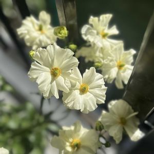 ラナンキュラスラックス3種✨ エリスとグレーシスは鉢植えで育てていましたが、昨年秋に地植えにしました。 アリアドネはポット苗で買ったのを最初から地植えで育てています。夏越し、冬越し、意外と平気で強いです💪 地植えにするとかなり巨大になって、株元の茎はかなり極太!太めの長ネギ級!切り花に出来ないんじゃないかと心配してましたが、花茎はスラッとしたラックスらしい細くしなやかな枝が出てきました。 エリスは草丈がかなり高いです💦後方の山茶花の枝を追い抜いてしまいました。株間も来年はもう少し広く取らないとギュウギュウです🐄🐄 花弁がキラキラと光って、とても美しく、写真を何枚も撮ってしまいます😆✨