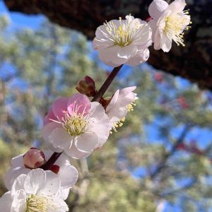 🏷日曜日は日本を感じる和の花 🏷日曜ビタミンカラー♪ 🏷野鳥 昨日は午前中は主人の🏥二軒、午後は私の通院日🏥🚙💨 終わってから、急いで梅園に向かいました🏃♀💨 夕方5時頃、数匹のウメジローが来てました🌸🌿🐦😍 ②〜④一本だけ、源平咲きの「おもいのまま」がありました!💗🌿😍 ④枚目は一つの花からピンクと白の花びらが出ています💗🤍🥰 ⑤ビタミンカラー♪の「ヒメキュウリンカ」がキラキラ綺麗です🌻🌿😍 キャプテン、お誕生日おめでとうございました🎂🎉💐🙌🥂