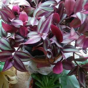 トラディスカンティア ゼブリナ💜💜💜 紫色の葉が美しい観葉植物💚💚💚 この冬の寒さで瀕死の状態だった鉢植えを友からたくされました😭暖かいリビングで復活しました🆗🆗🆙🆙😄😄😄
