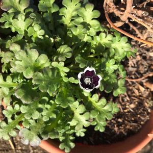 こんばんは 2月27日と、2月28日に投稿した、🌱咲きました。 ネモフィラです。間違いありません。 ネモフィラ ペニーブラックでした🖤 こぼれ種での発芽を数えたら、あと5つありました。 この鉢は、ブルーデイジーが咲いていた植木鉢🪴 ブルーデイジーは、枯れていますが、もしかしたら?芽が出るかも? 期待しています。