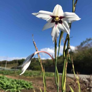 今日のお花 イキシア 昨年10月のお昼休み散歩にて 畑の隅に、見かけないお花が咲いていました。 イキシアでなくてアジアンデラと教えていただきました。 ありがとうございます。 秋の空にひっそりと咲いていました。 昨年、花友さんからいただいたイキシアの球根、少し葉が長ーくなってきました。 どんなお花が咲くのか楽しみです。