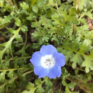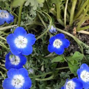 ネモフィラ💠 種蒔きして、やっと咲き出しました💕 大好きなネモフィラの色は アリスの洋服の色だと思っています。瑠璃色唐草との名もありますね。