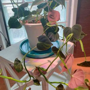 洗面所からこんにちは✨ と言っても写真は昨日撮ったものです〜🤣 8月23日に投稿した救出ティネケさん🪴 何か成長しないし上の方の茎がシワっぽくて💦 思い切ってカット✂️ 白い樹液が出ない💦 どこをカットしても出ないんです🤭⤵️ 茎の一番下 土に近いところが骨粗鬆症みたいになってました😱 ギリギリ生きてたんだ💦 で 3本水差しに😅 茎のシワが改善されてきました〜✨根っこ出るかな🎵 お隣のハート フィロデンドロンはスクスクと伸びてます〜🪴✨