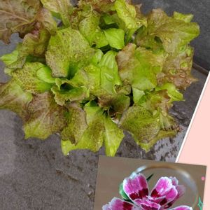 おはようございます⛅ フリフリレタスが、フリフリになりました✌🏻 柔らかくて、でもシャキシャキで美味しいんです😊早く食べたいな🎵 それと、右下の花、株が弱ってきてて、根腐れかな?と新しい鉢に植え替えて数日。あまり変化がありません。まだこれからなのか、違うお世話の仕方があるのか??(写真は切り花にしたものです。)