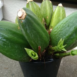 リカステの新株5個展開。 もうこれでは大きくなれないので鉢増しします。