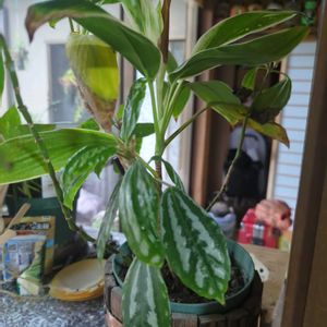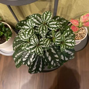 ピレア カディエレイ ・好きな斑入りの葉 先日の旅行先でたくさんの種類の サボテン・多肉植物・観葉植物に 出会いました❣️ どれもかわいい ふたばちゃんもかわいいけど… こちらもかわいいものばかり😍 迷って…5鉢連れて来ました その中の1つ