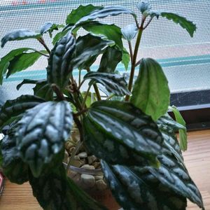 *ピレア.カディエレイ* ダイソーで、小さくて綺麗な葉っぱを見つけ、購入してから1年、こんなに大きくなりました!😊 ピローンと痩せ伸びてたんですが、やっと下から新芽が出てきました!😆