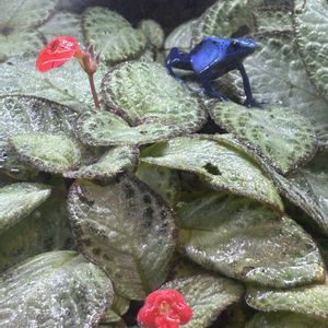 木金でお墓参りを兼ねて 伊豆旅行へ… ①あわしまマリンパークの カエル館の水槽の中 綺麗なピンクの花と真っ青なカエル ②あわしまマリンパークのアロエ 咲き誇ってる✨ ③お墓の河津桜🌸 暖冬のせいかまだ咲いてません