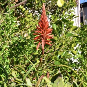 横浜磯子の、アロエの花。以前アップした蕾(12/4)は、花が終わってましたが、その後も次々に、花芽を出しては開花と、花盛りの森状態です。