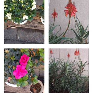 初詣の帰り道で見つけました😀 アロエの花🌸 左のお花は色ちがいで同じ種類だと思うのですが、名前がわかりません 「アザレア」教えていただきました