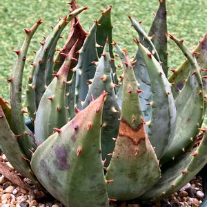 ぷっくりとした葉に トゲが生えているコンパクトにまとまった感のアロエ。 主人が大切に育てています☻