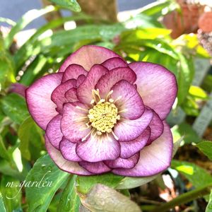 我が家のクリスマスローズ 4番花 地植えのダブルさん、 下から覗き込んでパシャ‼️