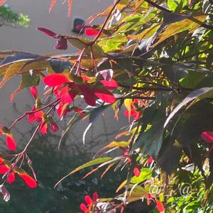 今朝のあさんぽ🐾 もみじ🍁楓🍁 真っ赤なのは 秋だけだと思い込んでました 幼稚園のお庭に このヘリコプター🚁みたいな 楓の実あって 竹とんぼみたいに飛ばしてみたかったけど 難しかった😢 結局たくさん拾い集めて 紙吹雪みたいに 撒き散らして喜んでた記憶が🎉