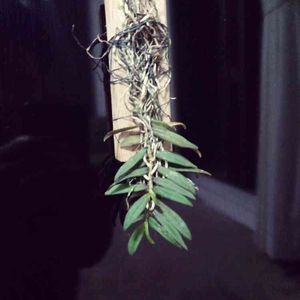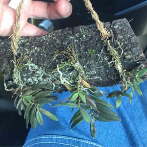 カヤランを頂きました。 何かと気難しいらしく考えたあげく苔生したドングリの木にホッチキス止め😁