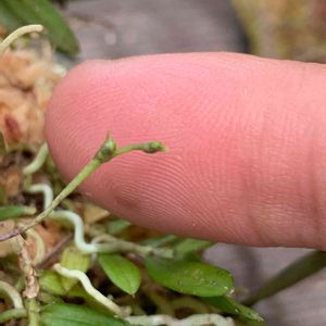 わたしの指はどうでもいいのです… カヤランですが、これ花芽ですか??? 初めて育てるのでわかりませんが、春に咲くはずなのに今から花芽がつくものなのかな?