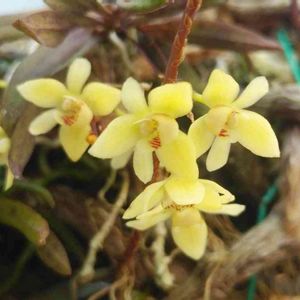 ヤフオクでポチったカヤラン 他にムカデラン、ヨウラクラン、カシノキランも一緒にポチりました🙄 来た時から蕾が黄色くて、そもそもどういうもんかわかってへんだから、咲いた後かな〜って思ってたらまだやったみたい😊 可愛い花や😍 なんとなく香りもする テグスが見つけられへんくて 麻の毛糸?みたいなんでくくりつけてみた。 調べたら全部難しそうやから、あかんかな… 取り敢えず着生してくれたら良いんやけど😓
