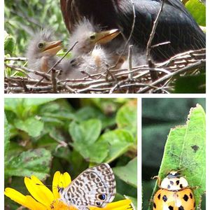 上 アメリカハマグルマとWhite peacock butterfly 下 dainty sulphur