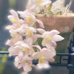 カタセタムくんさんから頂いたレベッカノーザンを鉢に植え替えました🌱 どんな感じにしようか迷い鉢の内側に水苔、水苔に包む感じで鉢の穴が小さめなのでハイドロカルチャー1/4、ベラボンs3/4の割合で根っこの付け根はぐるっと水苔で巻いて入れ、ワイヤーで吊るしてみました🤔🌀 調べても中々正解が分からず花が出なくてもどうか無事に根っこを貼ってください🙏